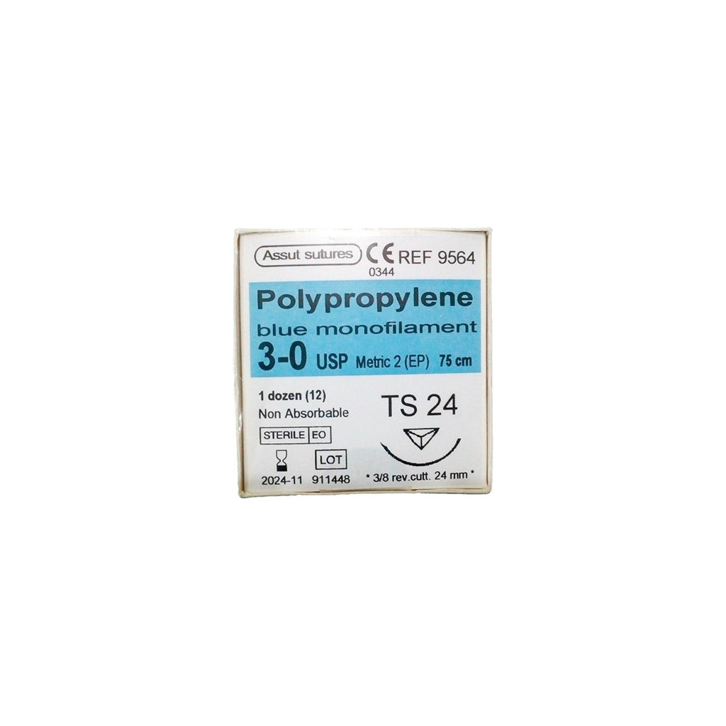 Sutura Quirúrgica No Absorbible de Polipropileno 3/0 TS Aguja 3/8 Cir Cortante 24mm Hebra 75cm - Ref. 9564
