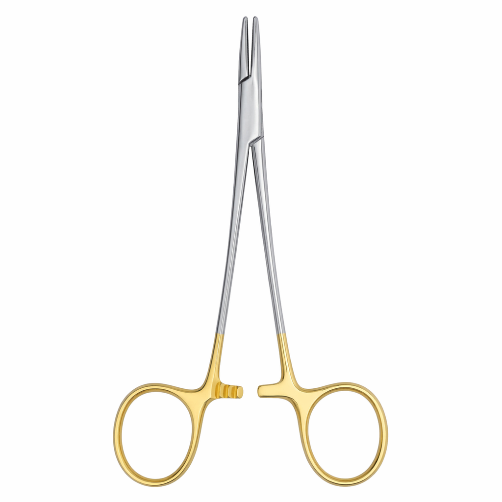 • Beneficio funcional: Su diseño ergonómico permite un agarre firme y seguro de las agujas, facilitando la sutura precisa.